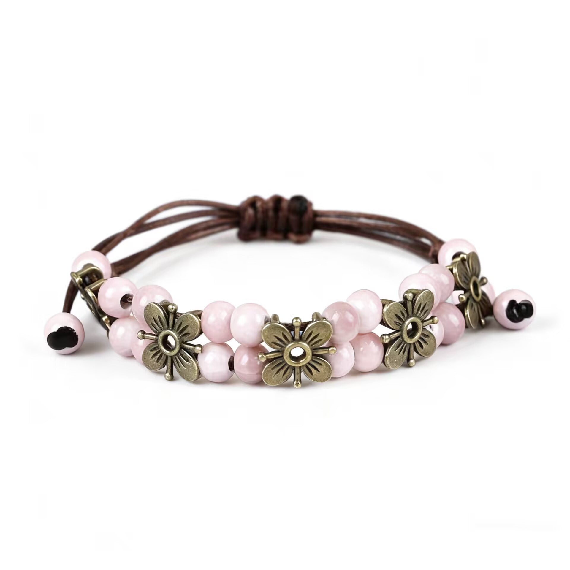 Holiday Gift Vintage double-layer four-leaf clover bracelet female student gift ceramic jewelry